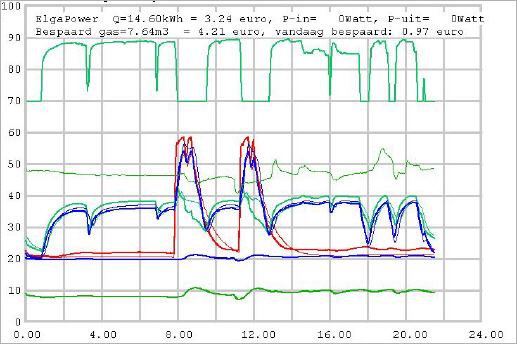 Het rendement van deze warmtepomp is 460%. Dat lijkt misschien onmogelijk maar je moet het vergelijken met een pomp die water uit een polder weg pompt van het lage nivo van het land naar het hogere nivo van de ringvaart. Zo pompt een warmtepomp warmte van het lage temperatuurnivo buiten naar het hogere temperatuurnivo binnen. Op die manier pomp je dus met 1 kiloWattuur stroom voor de warmtepomp 4,6 kiloWattuur aan warmte je huis in.