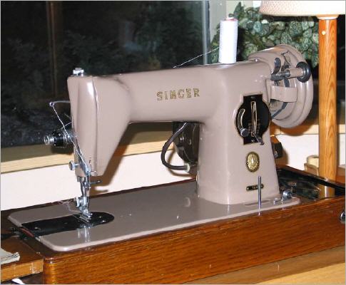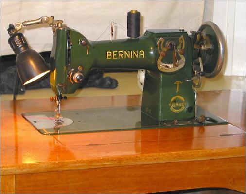 Singer 15M, 1935 Our oldest and most powerfull machine. It stitches through 8 layers of Denim with ease and makes beautifull sewing patterns. We bought it for € 25,- from a Singer dealer who defenitelly did not now what he sold :-). Power is controlled by moving your right knee, but that will be changed to an electronic system developed by Bromsmurf. We did that for the Bernina allready and the results are super. Good regulation and gentle yet powerfull at low speeds. So, soon this machine will be a Singer 15M - electronic, like the Bernina 117K - electronic :-).