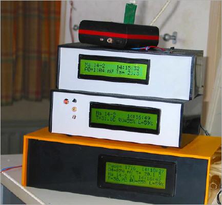 These are instruments of the Krokus family From top to bottom: -Krokus Datamini, miniature datalogging instrument. -Krokus Datalogger, powerfull datalogging instrument. -Krokus Remote Sensor, wireless measuring instrument. -Krokus main instrument and control center, a precision Datalogger and a wireless hub for Krokus Remote Sensors.