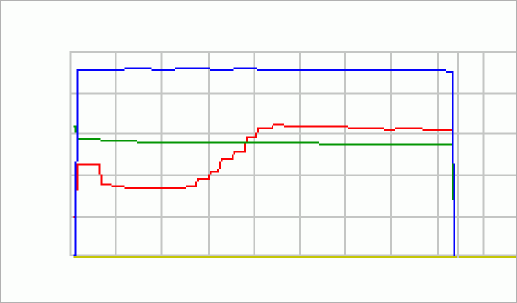 A temerature curve (RED line). This is a typical curve for the washing mashine heating to 40 degree C. First you see a drop in temperature when the fresh water comes in and, after 10 minutes, temperature starts rising at a rate of about 3 degrees per minute until the final temperature level is reached.