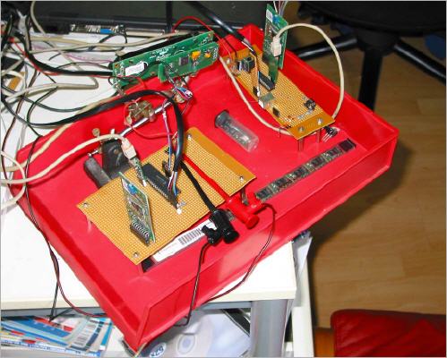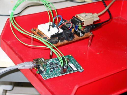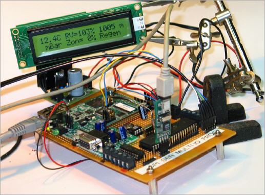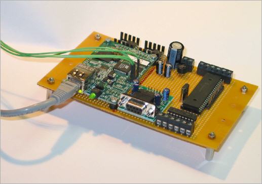 Embedded WebServer The WebServer (front) and the Basic Stamp in the background connect the 'Weatherstation Voorschoten' to the internet.